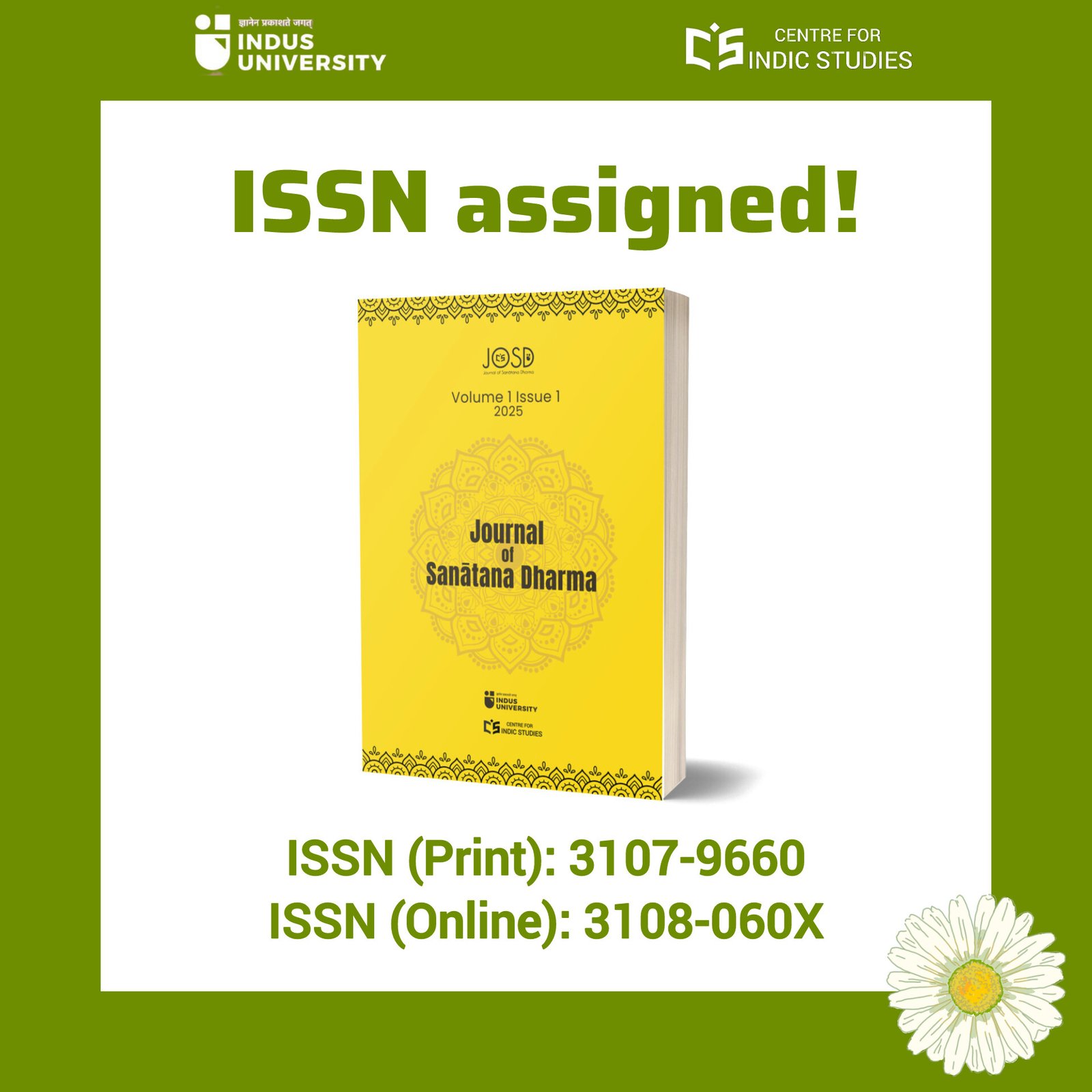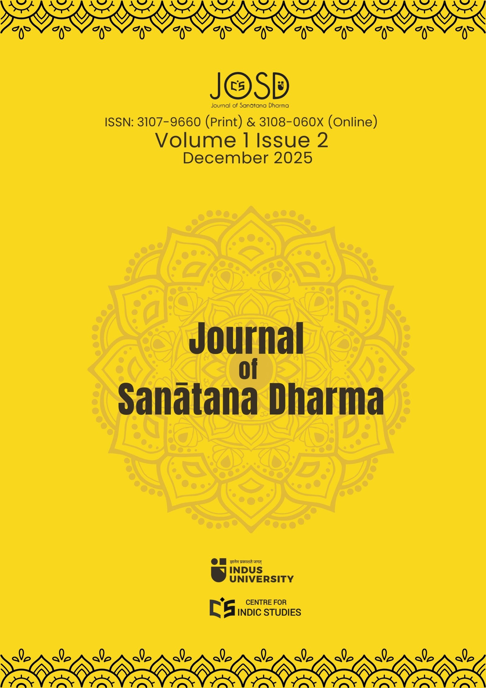 The Journal of Sanātana Dharma, bearing the ISSN (Print): 3107-9660 & ISSN (Online): 3108-060X, is a biannual, multilingual, peer-reviewed international journal which was started in February, 2025, and published by the Centre for Indic Studies, Indus University. We publish research articles written in multiple languages (English, Hindī, Gujarātī, Bāṅglā/Bengali, Marāṭhī, and Saṁskṛta/Sanskrit). The journal, published both in print and online, is dedicated to publish authentic academic research articles in all the fields pertaining to the Sanātana Dharma (including Hinduism, Buddhism, Jainism, and Sikhism) and the subject category of the journal may be identified as Religion/Theology for broader understanding. We encourage research articles on the following fields: